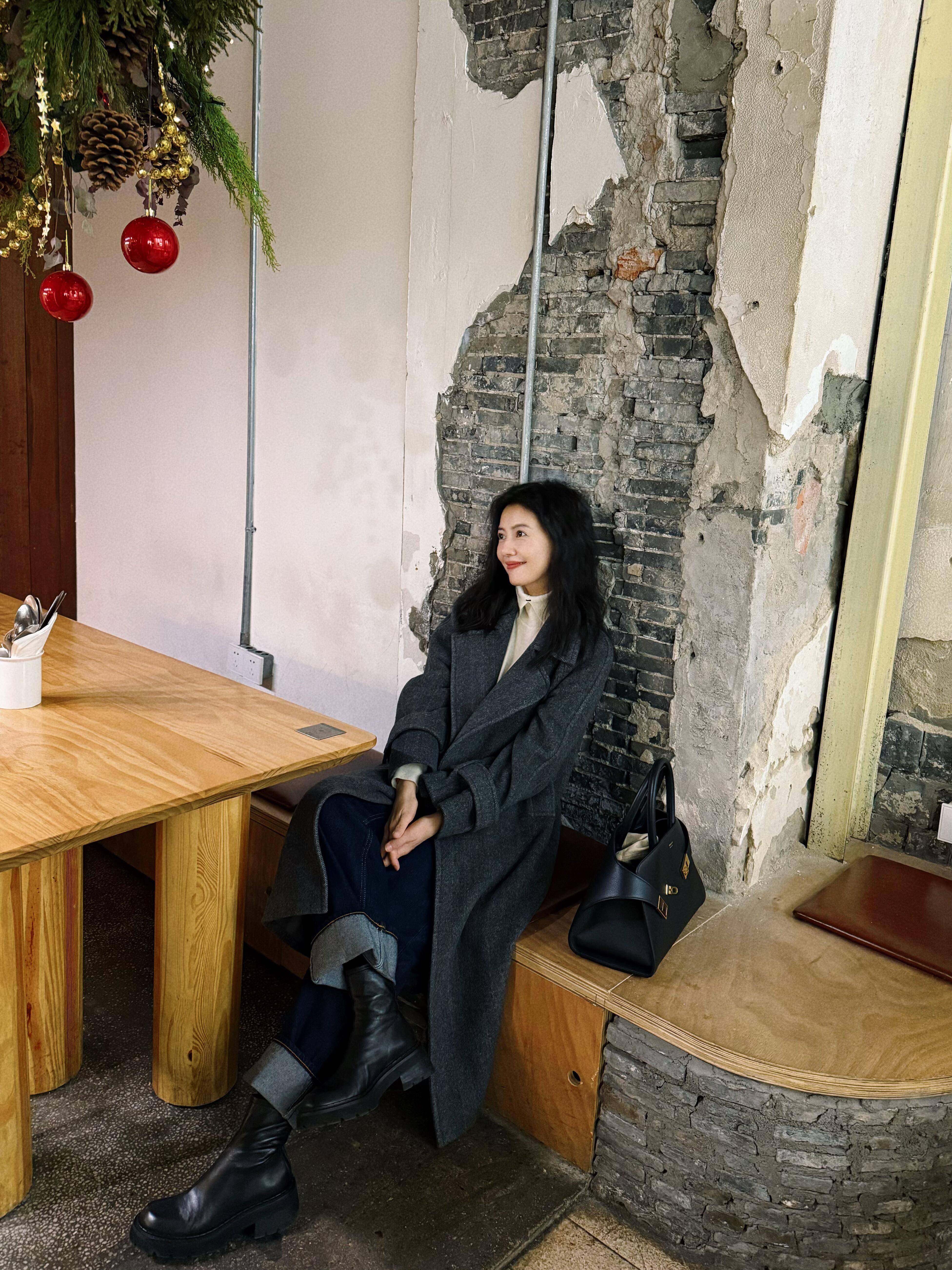 在如此重要的节日里,质感至关重要,尤其是大件单品,如羽绒服、大衣等。大衣可选 H 型或微廓形,下摆刚好盖住臀部,既能藏住腰腹和臀部的小赘肉,又不会压身高。