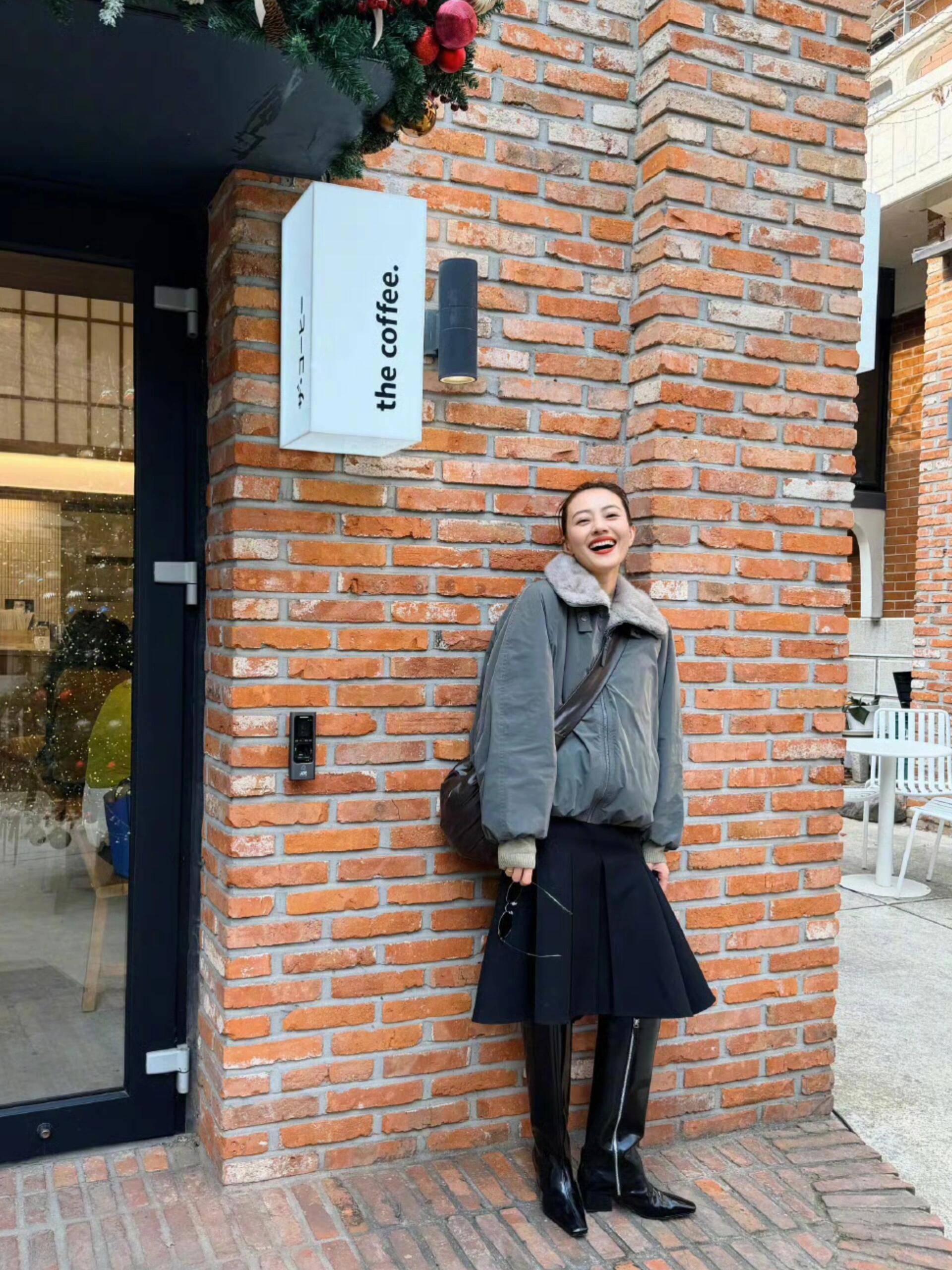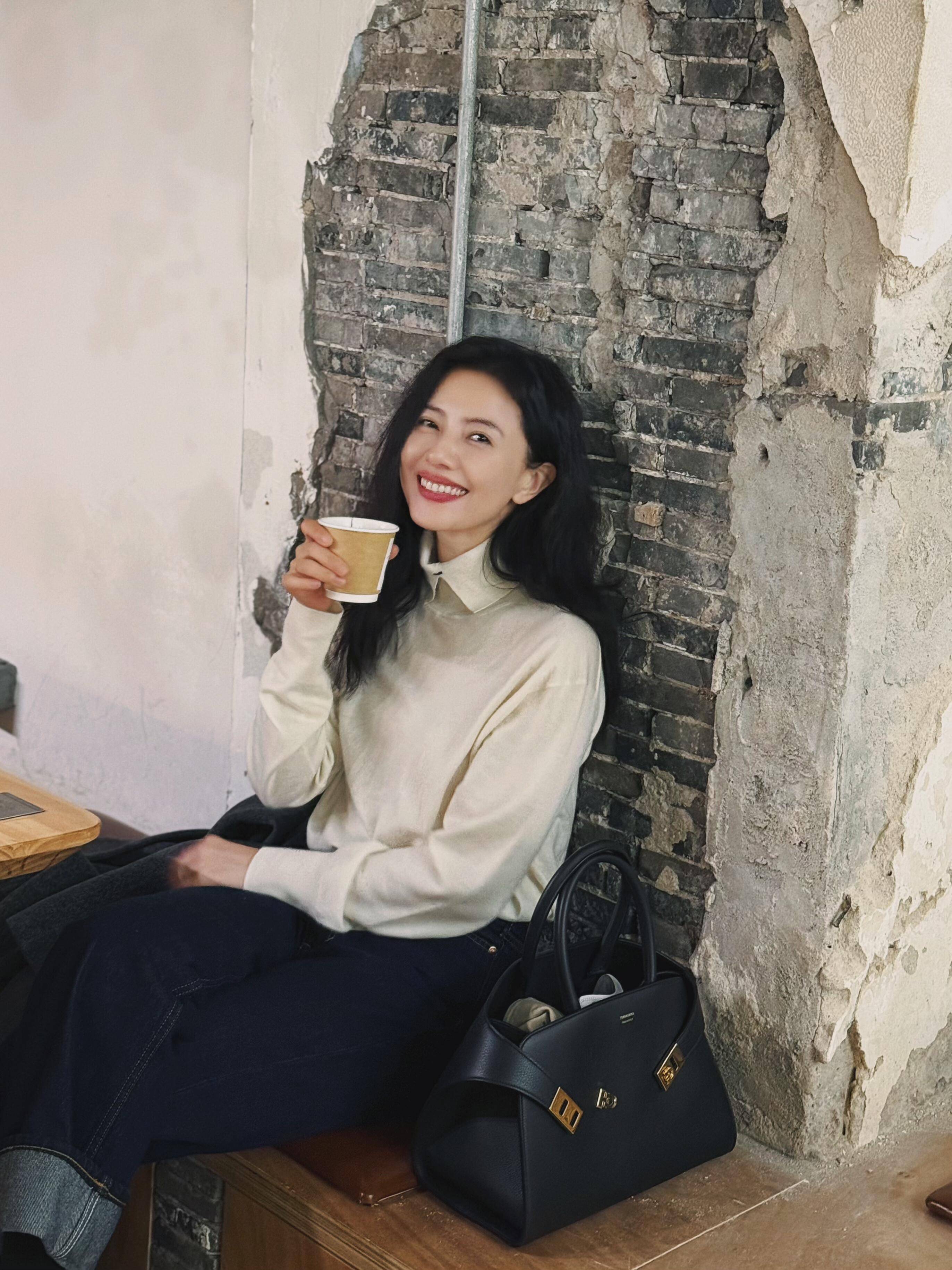 在配色上,她深谙 “少即是多”,一身造型顶多两种主色,用小面积亮色做点缀 —— 比如摩卡色大衣搭配蓝色牛仔内搭,再用一点点红色作为内搭,低饱和主色奠定大气基调,小面积暖色增添新年氛围感,既不沉闷,也不过于张扬。
